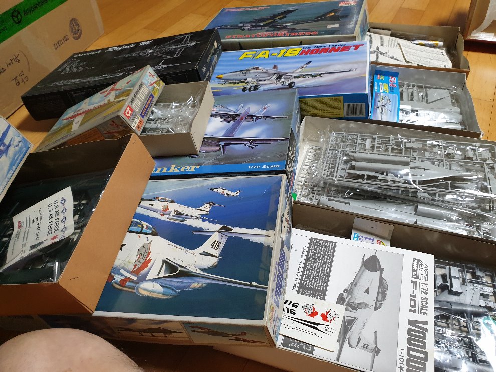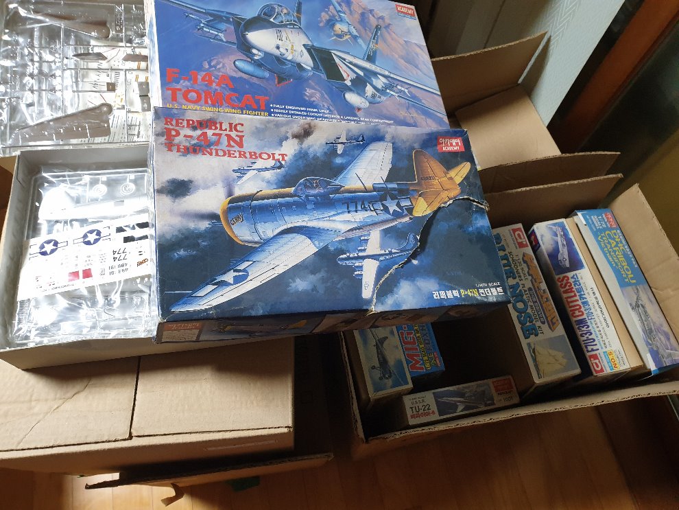 에어로 팝니다. 첫째 사진(1/48 인트루더 포함) 20만원, 둘째 사진(아카데미 1/144 B-52H 포함, 에이스 1/72 mig29 포함) 15만원, 셋째 사진(아카데미 1/72 F-14, 1/48 P-47N 은장판 포함) 10만원입니다. 감사합니다.