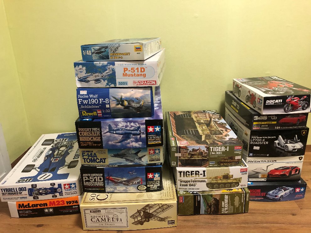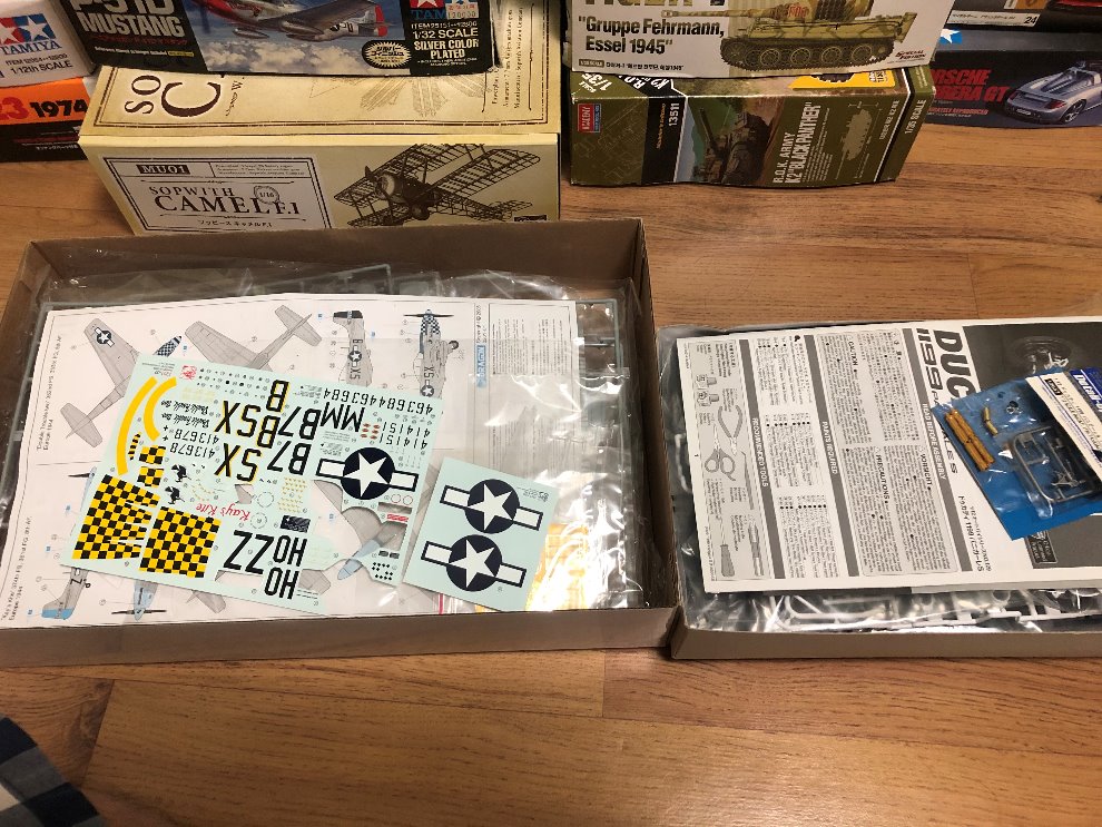 머스탱은 데칼 몇개를 쓴 상태(완성하는데는 문제 없습니다.), 타미야 듀카티는 별매셋(포크)포함입니다.