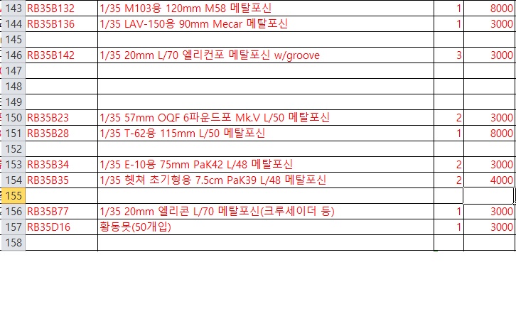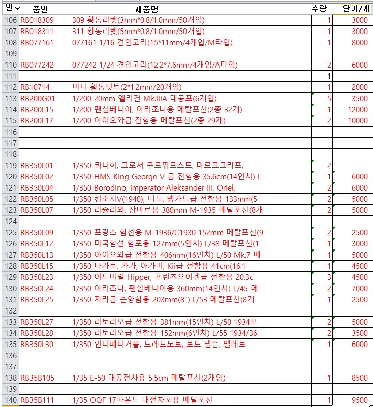 RB 모델 메탈포신 판매 합니다.(밀리/함선)
