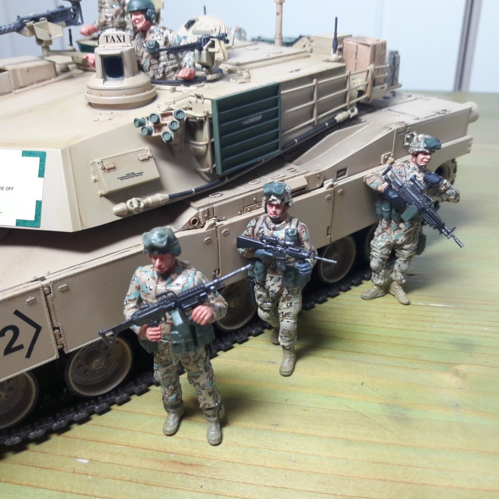 1/35. 드래곤 M1A2 sep전차와 트럼펫 전차보병 세트. 판매가 14만원 배송료3000원
