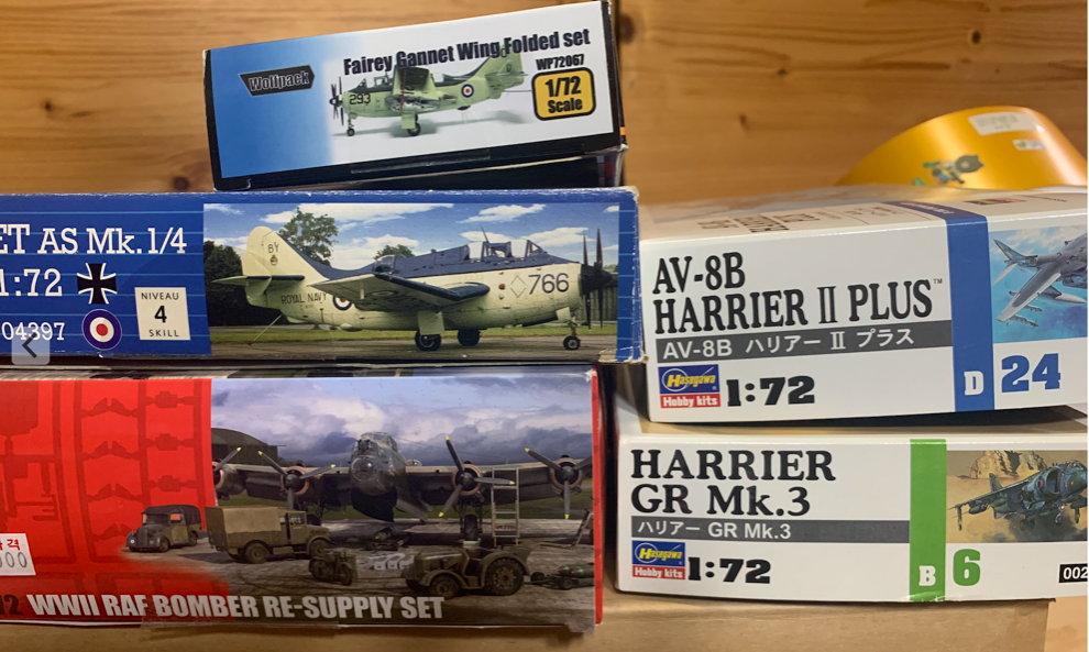 1. 품목 : 페어리 가넷 1/72+윙폴딩 세트, 해리어(1/72) 2종, 2차대전 영국공군 폭격기 재보급세트