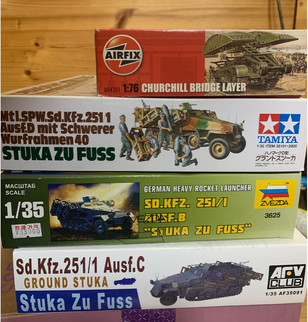 1. 품목 : 그라운드 슈투카 3종(타미야, 즈베즈다, AFV), 처칠 가교전차