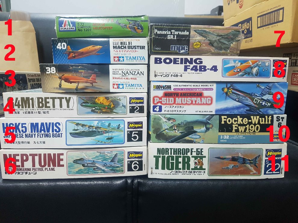 1~7번은 1/72 스케일, 8~11번은 1/32 스케일입니다.