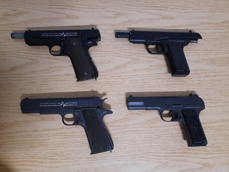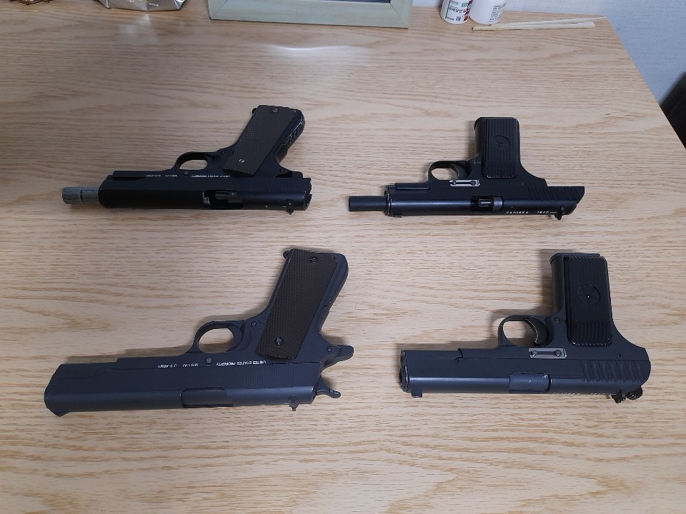 토이스타 풀메탈 콜트랑 토카레프입니다. 콜트& 토카레프 검정 1정, 그레이 1정씩 총 4정입니다.