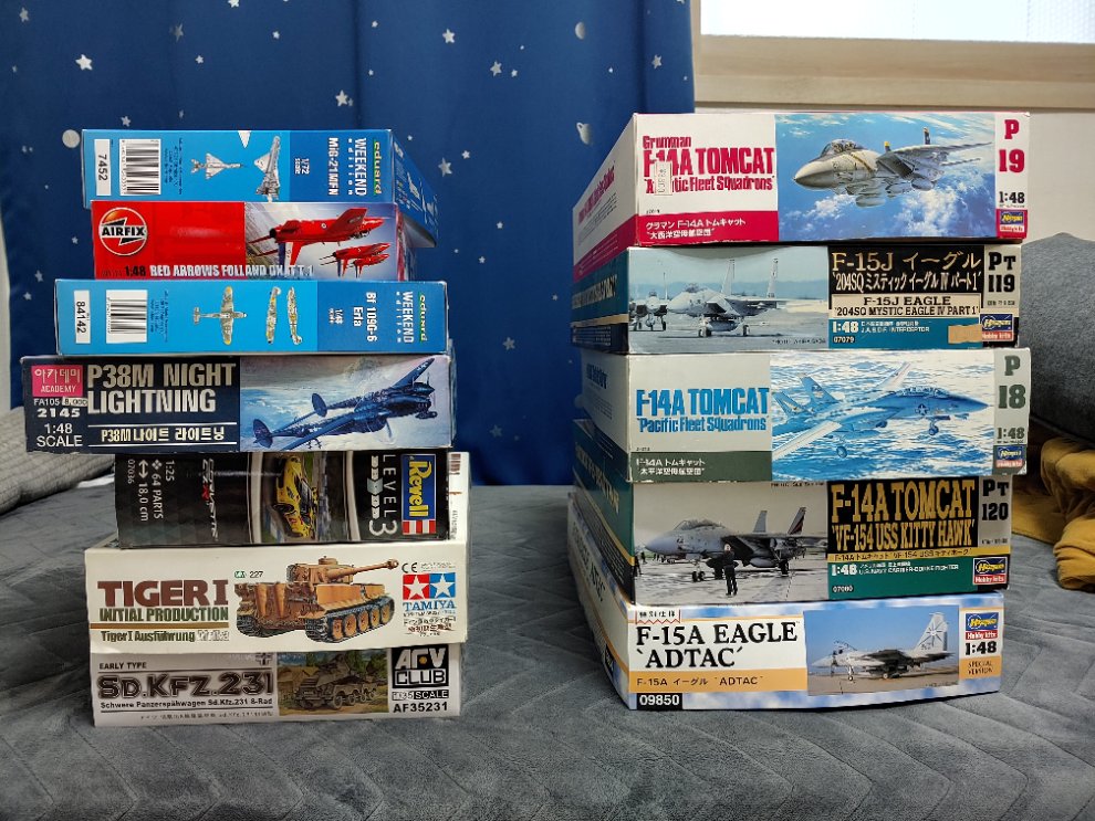 1/48 하세가와 F-14A Atlantic 32,000 - 박스에 세월의 흔적...데칼이 살아는 있는 것 같은데 상태 좋지 않음 (아래 모노키오 데칼 포함해드림)