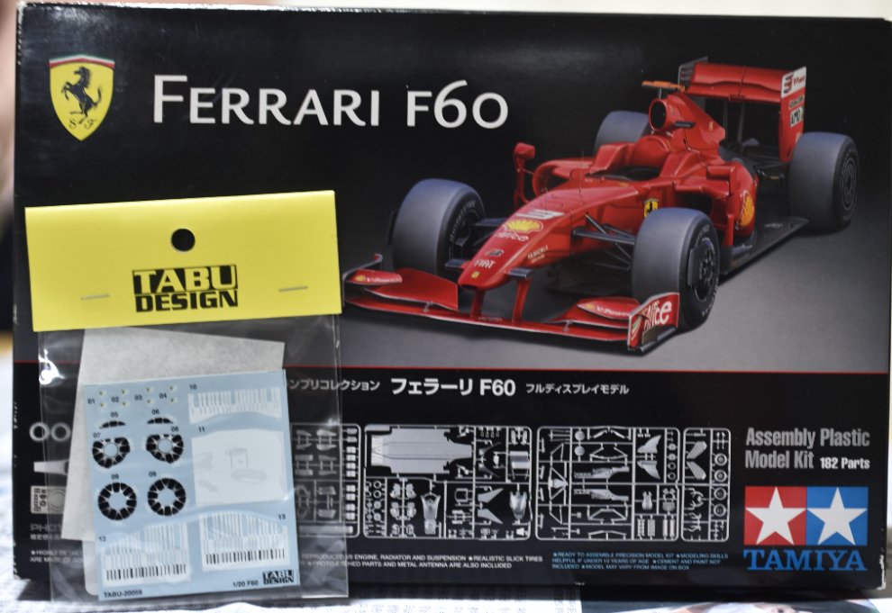 1. 타미야 1/20 F1 페라리 F60+옵션데칼 포함(타부디자인제,사진참조)--박스다소 세월흔적있으나 크지않음, 내용물 미개봉,데칼상태A--55,000원(송료 포함)