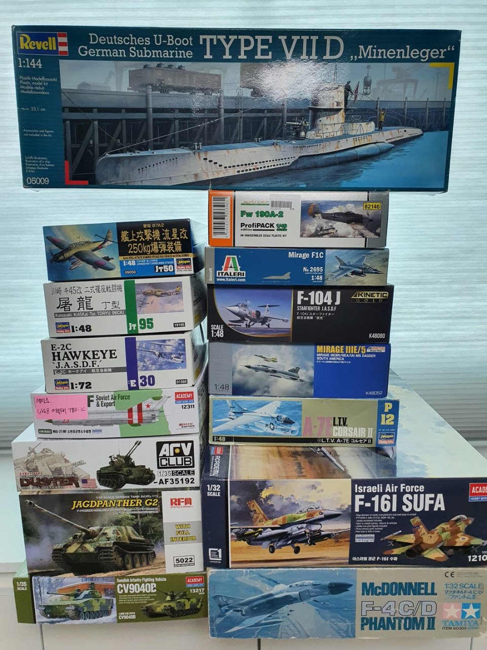1. 레벨 1/144 유보트(벼룩시장 구입품인데 첨부 사진처럼 동체 우측 부품 살짝 갈렸습니다) - 2만원(판매완료)