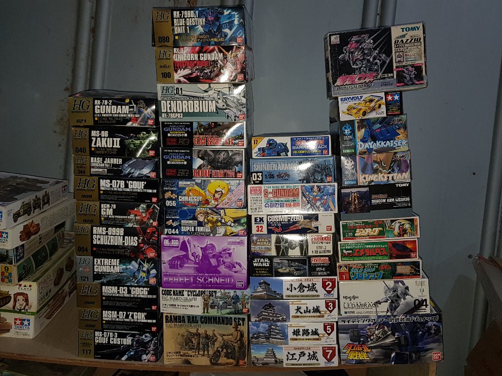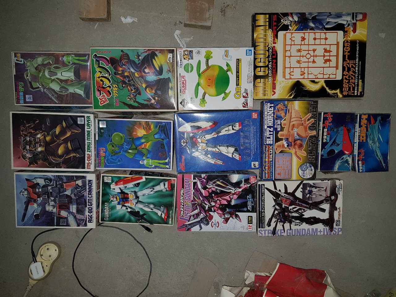 4열 스트라이크 8천원, 조이드5천원, G건담(엠지)부품 4천원, 하록 각 2천원.