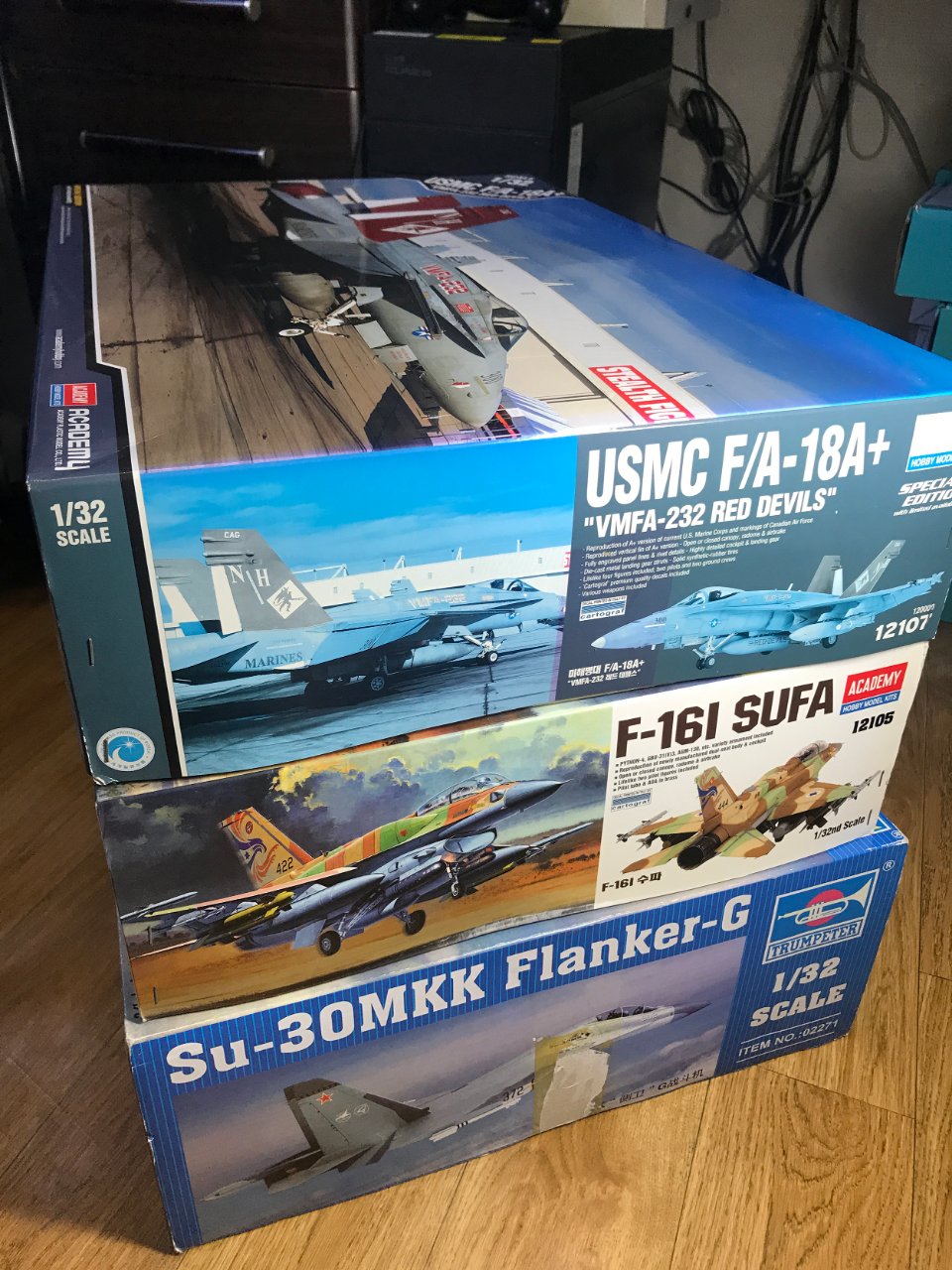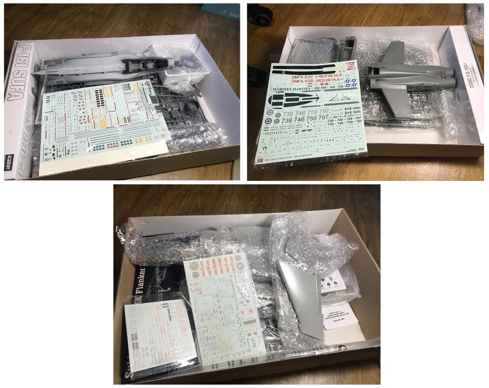 반조립되어있는 1/32 현용전투기 세 개 일괄 판매합니다.