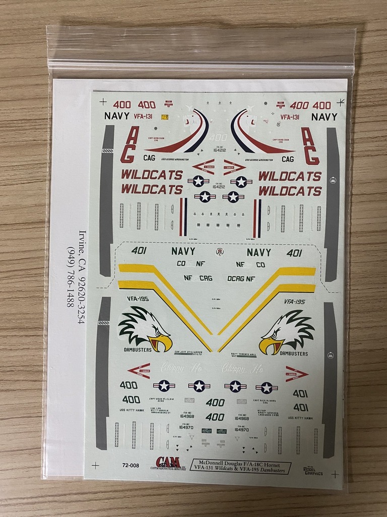 CAM Decals 1/72 F/A-18C 데칼 (저명도편대등 야광) : 1.2만원