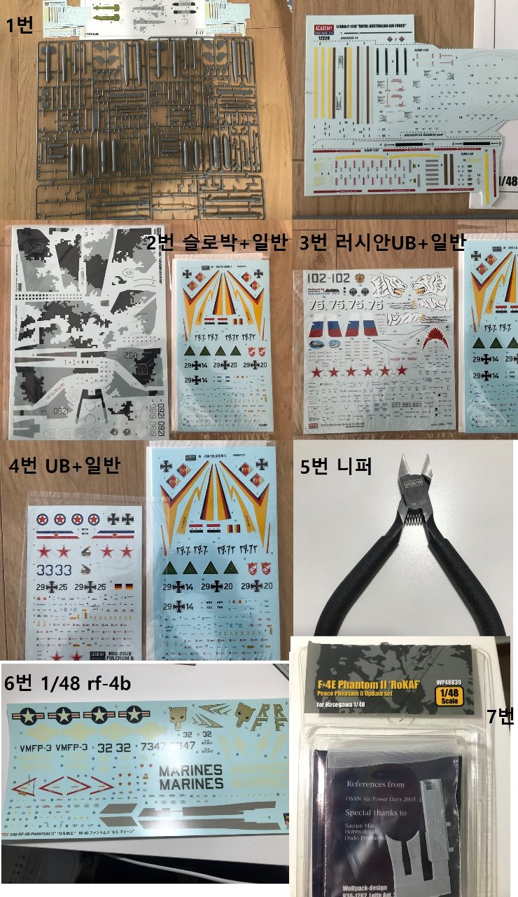 6번 1/48 하세가와 RF-4B 데칼 + 설명서 판매가 1000원 약간 누런끼가 보여요.. 돈 받고파는 것도 죄송스럽네요ㅜㅜ