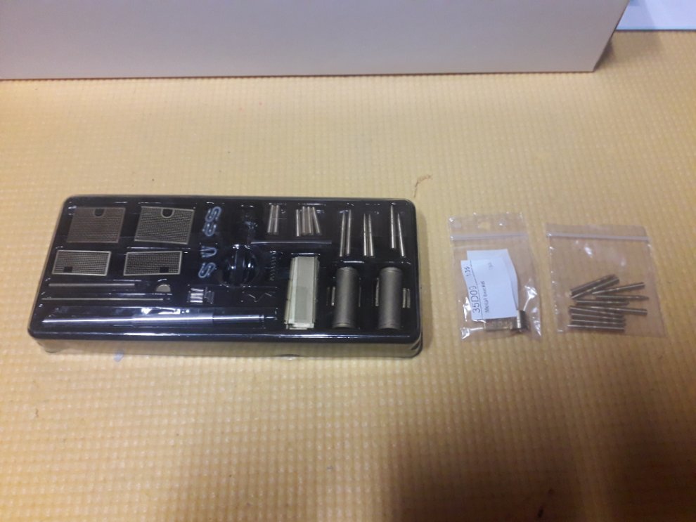 2번대 사진처럼 양동이는 원래 키트에 포함된 것이 아닌 RB모델 제품이 들어있으며, 세번째 사진처럼 검은색 종이판에 에칭과 잡다한 런너가 들어있는 것을 밀봉한 비닐은 부품 확인차 개봉되어 있습니다.
