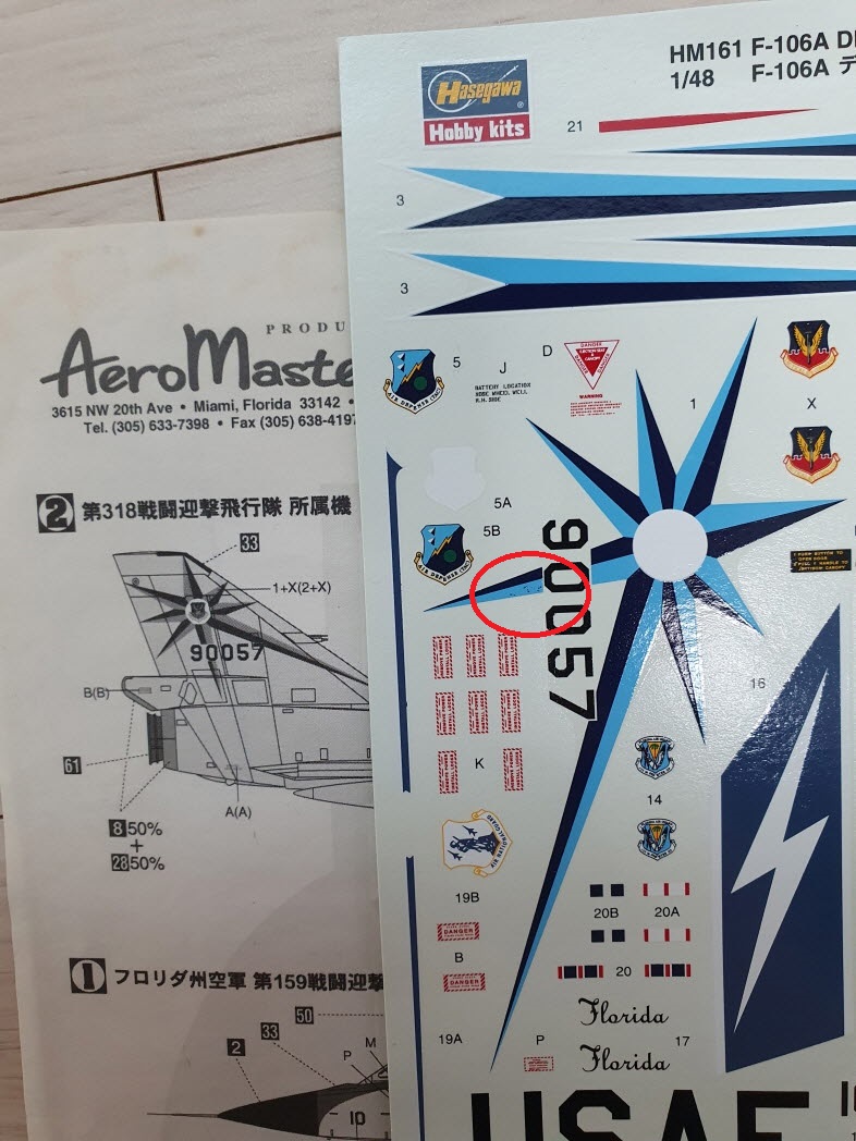 3. 하세가와/레벨 1/48 F-106키트에 들어있는 데칼 (카르토그라프 / 마지막 첨부사진처럼 일부 불량) - 1만원