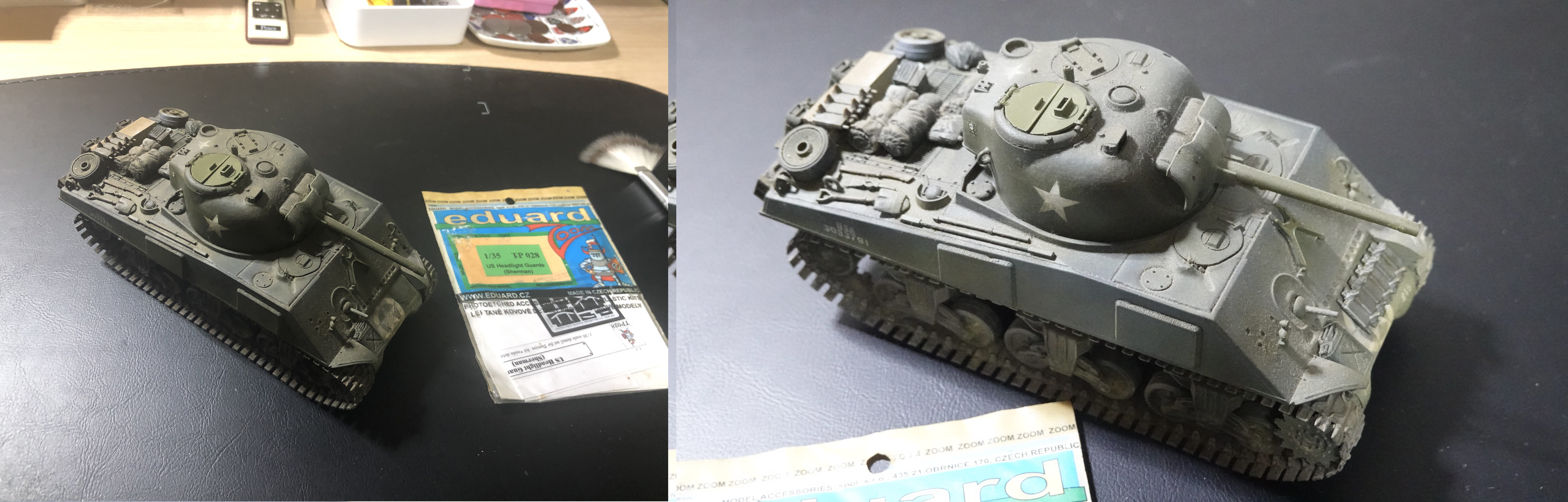 셔먼 탱크 도색과 데칼작업한거 판매하겠습니다. 빠진부품도있고요 정면 라이팅 가드는