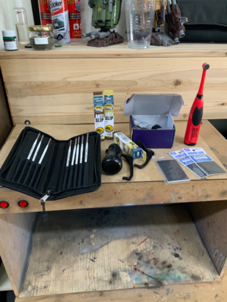 인형 도색베이스. 사용감있음. 501. 붓셋트. 군제 전동 사포. 황선생님. 은. 인형만. 있음. 전차 표면 표현제 미끄럼 방지
