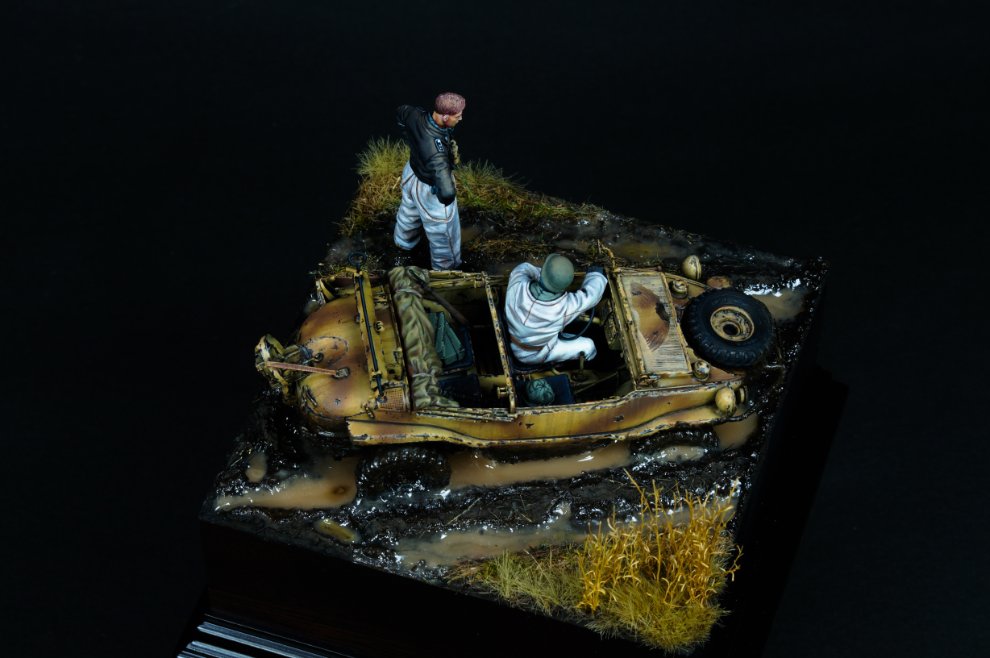 사용된 키트는 1/35 타미야 슈빔바겐에 Passion models의 에칭이 부분사용되었고 Def사의 바퀴로 교체되었습니다. 인형은 알파인과 만티스의 인형에 호넷헤드로 변경하여 제작하였고 90% 아크릴로 페인팅하였습니다.