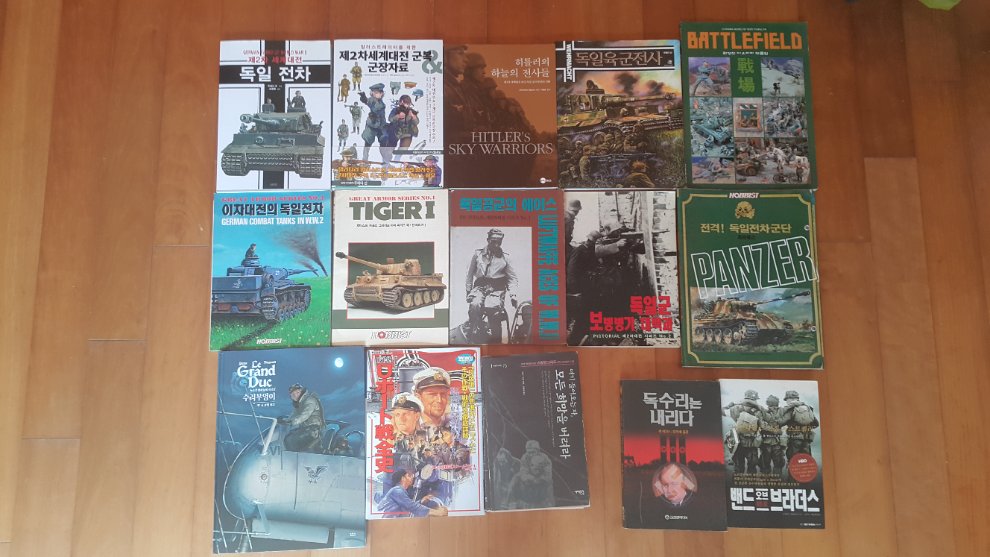 12만원. 타이거 자료집은 파본 낙장이 있습니다. 이차대전의 독일전차. 배틀필드. 보병병기 대백과. 오래됐지 만 양호. 독일공군의 에이스는 오래지만 볼만은 합니다 그외책은 새책수준이거나 양호...