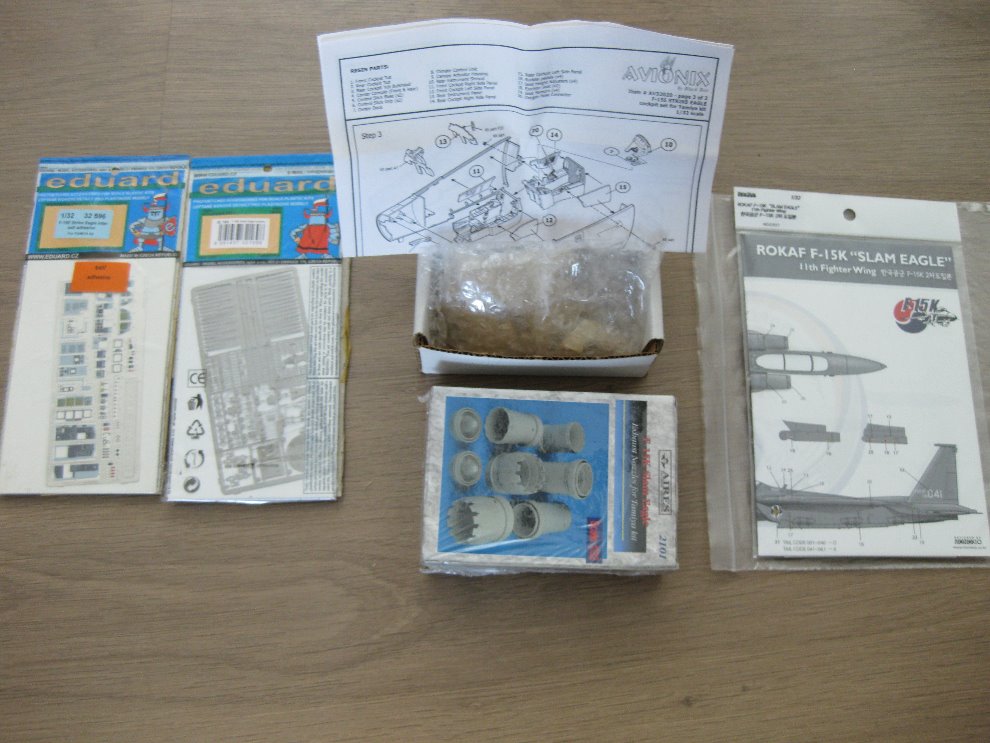 1) 구성: 인테리어, 익스테리어 에칭 + 노즐셋트 + 블랙박스 콧핏셋트 + 한국공군 별매데칼 + 타미야 F-15
