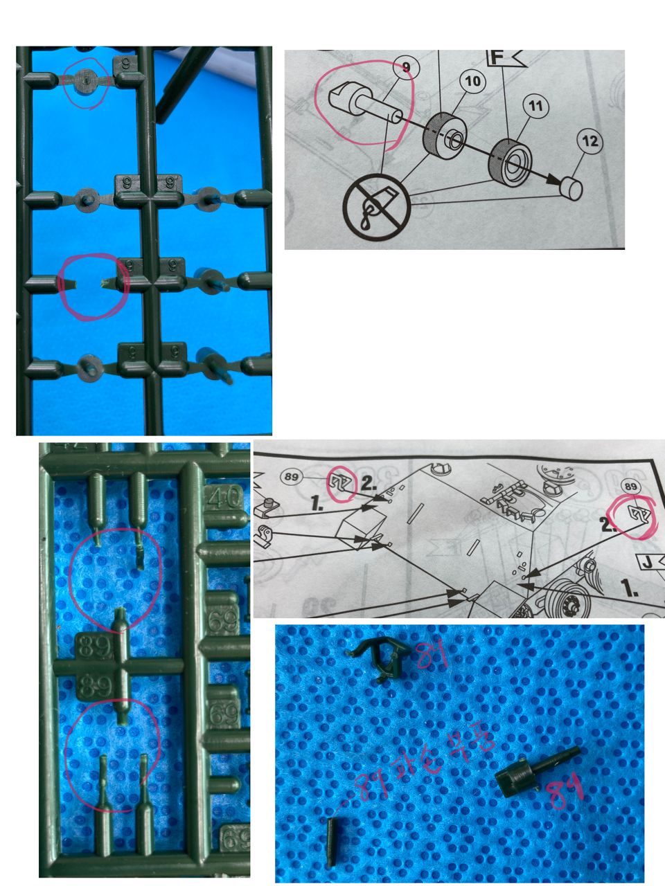 야크트판쩌는 떨어진 부품 1개, 부러진 부품 2개, 망실 부품 1개가 있습니다. 망실 부품은 89번입니다.(사진 참조)