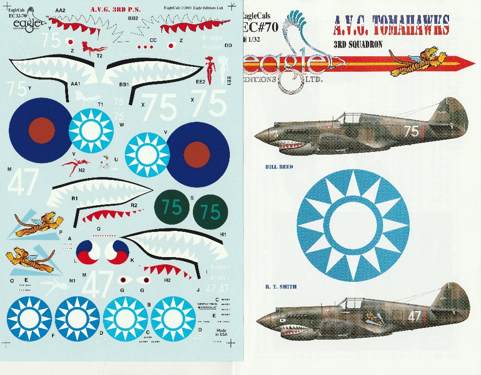 - EagleCals decals 1/32 P-40 B/C Tomahawk AVC 3rd Squadron...............13,000원(예약중)