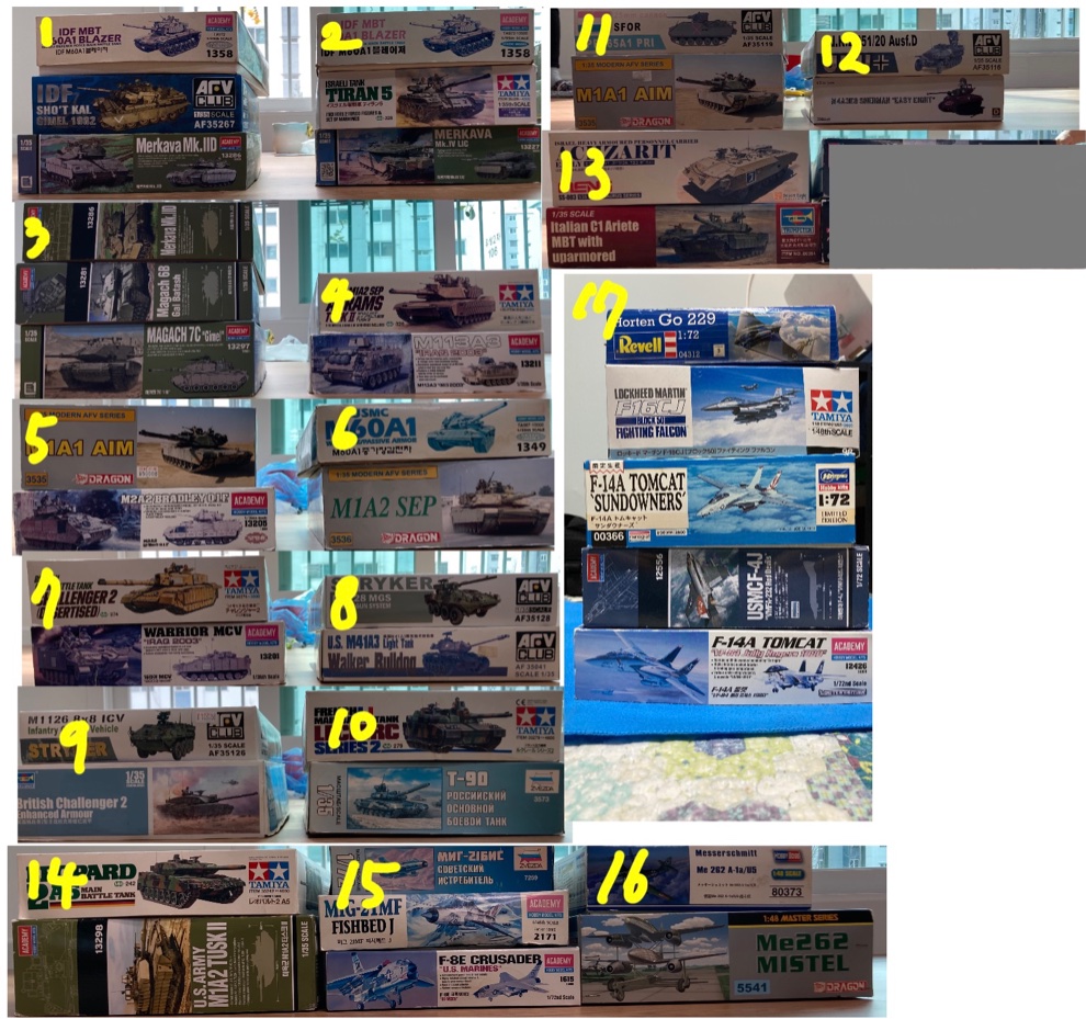 아카데미 M60A1(박스상태 좋지 않음) 블레이저, 메르카바2D, AFV클럽 IDF SHOT KAL GIMEL