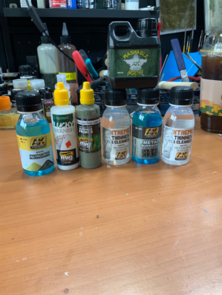 에칭부식액. 치핑도료. 괘도부식액. 신너, 마감재