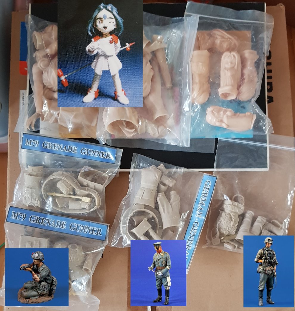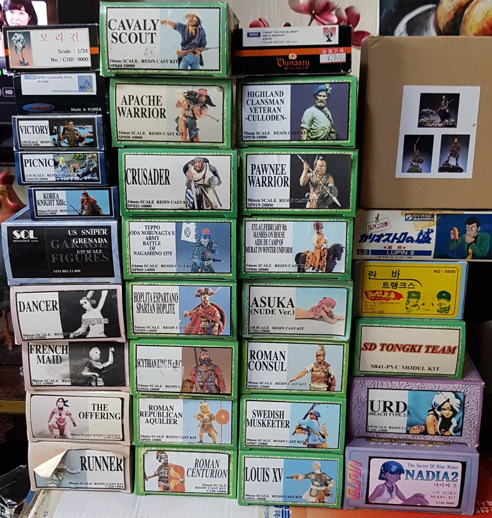 레진인형은 박스전면 사진이 없는것들이 끼어있습니다. 내용물은 미개봉품입니다. 박스가 없어져 못올린 물건도 다수 있습니다.