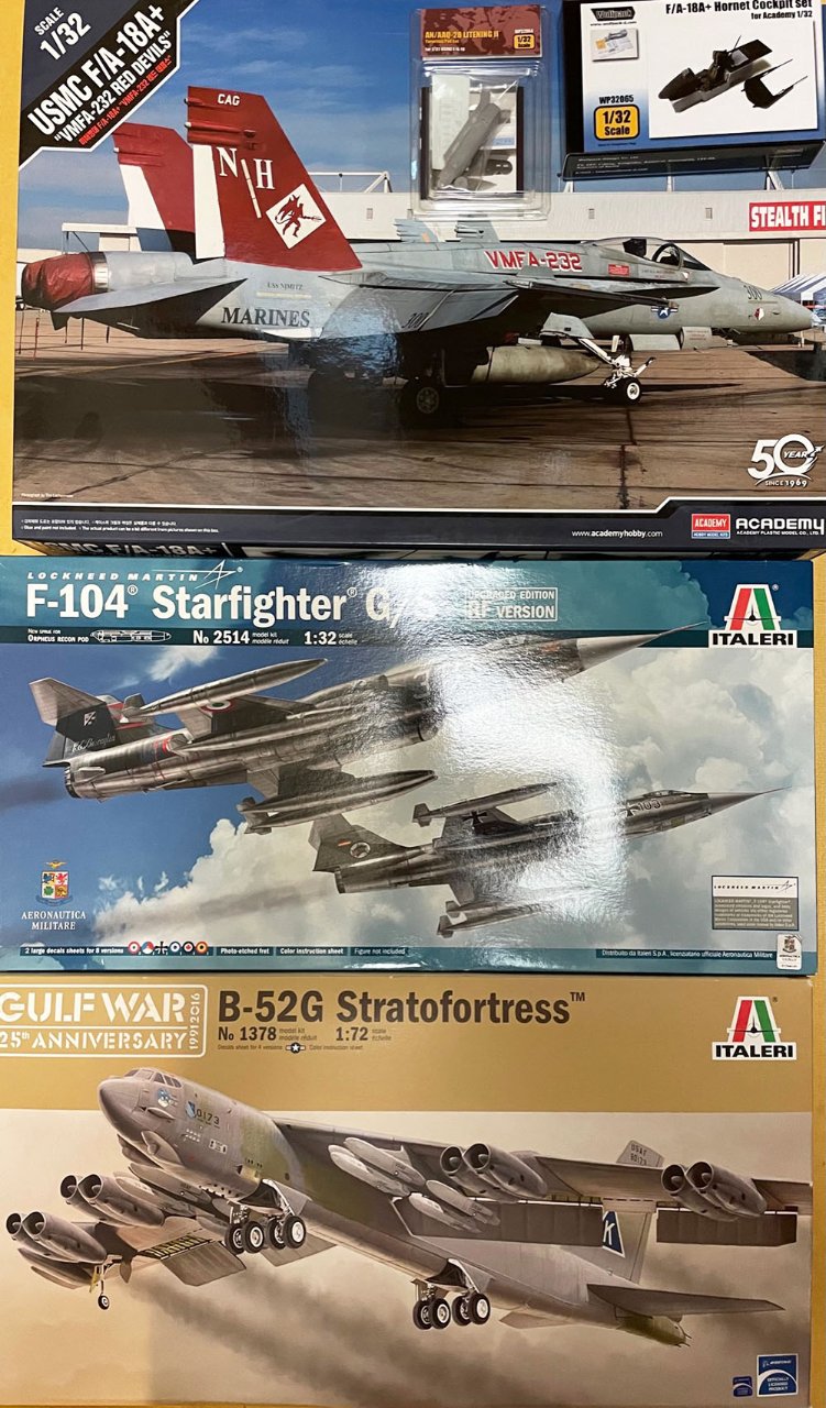 (1) Academy 1/32 F/A-18A+ Hornet + Wolfpack 1/32 Cockpit set + AN/AAQ-28 라이트닝II 포드 세트 (12만원)