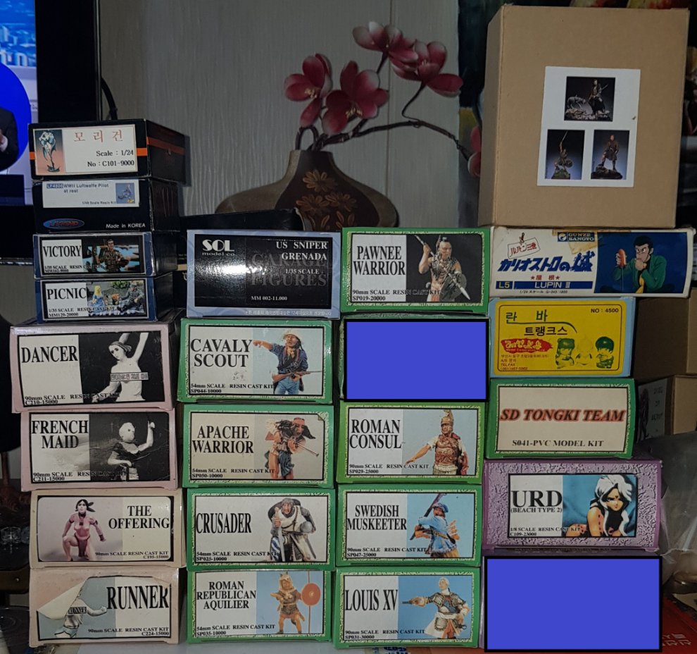레진인형은 박스전면 사진이 없는것들이 끼어있습니다. 내용물은 미개봉품입니다.