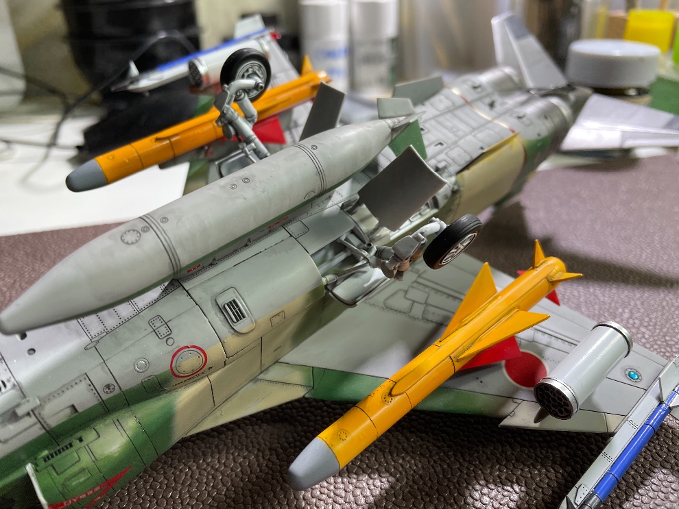 하세가와 제품. 1/48 자위대 지원전투기. 가격 38. 별매 무장 세트 적용. (공대함미사일, 로켓런쳐, 공대공미사일)