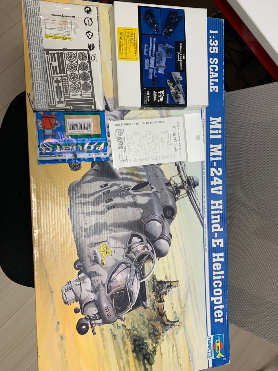 1/35 트럼페터 MI-24 HIND + 콕핏,카고셋(벨린덴) + 무장에칭파츠(에듀워드) + 캐노피마스크 = 판매완료 *박스 세월의 흔적있음 (더이상 못구하는 옵션파츠들임!!)*