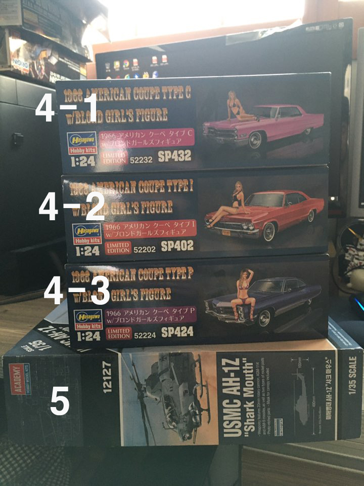 4. 하세가와 한정판 자동차들 각각- 2.2 (피규어들은 없습니다)