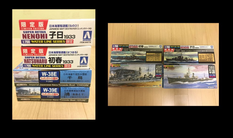 피트로드,아오시마 1/700 워터라인 4종 판매합니다.