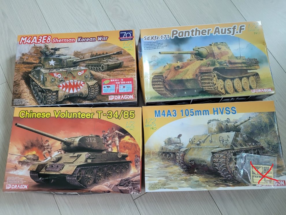 1/72 m4a3 105mm HVSS 14500 [에칭 제외(빨간색), 에칭 따로 있어요. ]