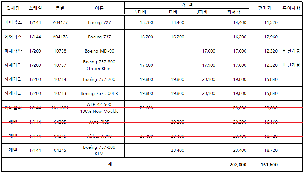 보통 5년이상 보관했던 것이라 되도록 그때 가격을 반영하려 노력했습니다