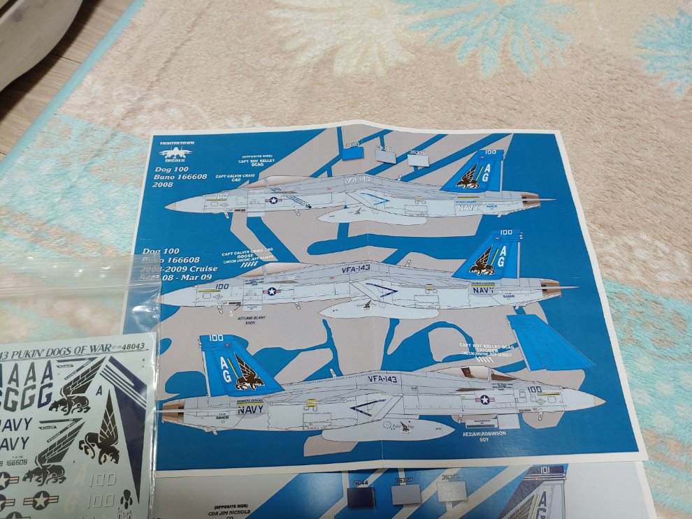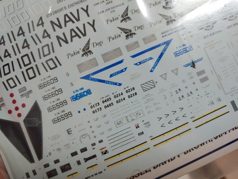 1. 구성은 초판으로 발매되었던 미국레벨 F/A-18E + 아이리스 콕핏세트 + 파이터타운 별매데칼 + 울프팩 파일런세트 입니다.