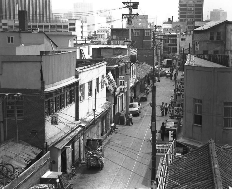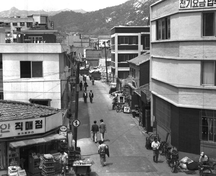 사진의 오른쪽 건물이 지금도 존재하는 통인시장 입구의 효자아파트입니다.