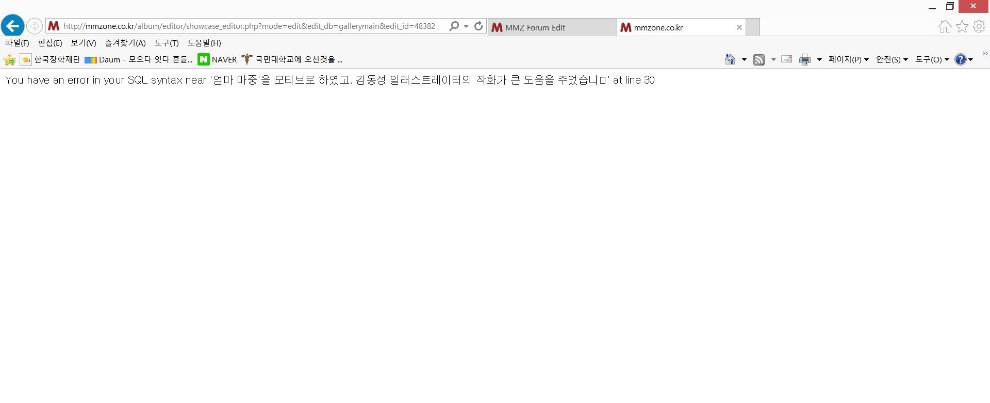 쇼케이스 편집을 하려면 SQL syntax 에러가 뜹니다.