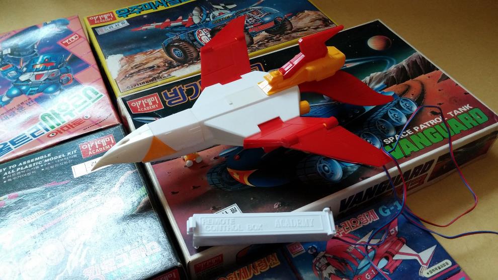 독수리오형제 2기 사령선(건전지리모컨작동)은 조립한 것인데, 2500원 가격표가 붙어 있어 82~84년 정도에 발매된 제품이고,