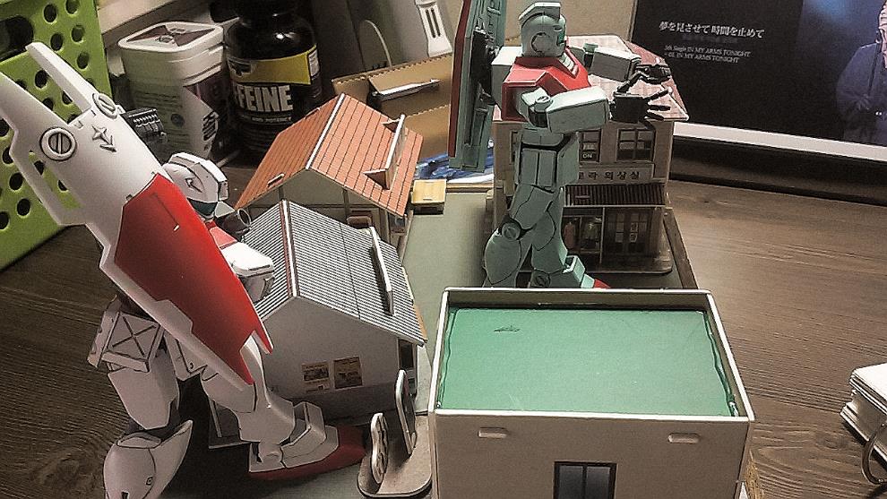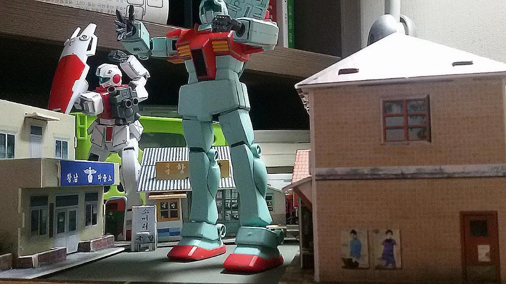 지온군의 자쿠와 연방의 짐이 서로 골목길에서 뒤엉켜 난전을 벌이는 컨셉으로 구상하고 만드는 중입니다.