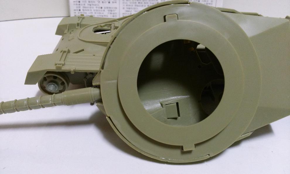 포탑을 조립하는데 상당히 애를 먹었습니다. 상 하부 조립작업과 씨름을 하였습니다. 결과적으로 아귀가 맞지 않고 그 틈이 너무 커서 사진의 상태로 접착을 하였습니다.