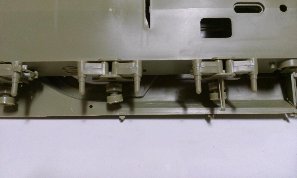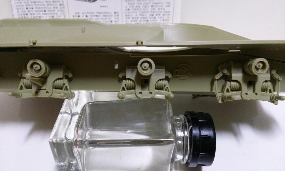 치프텐의 경우 센추리온과는 달리 서포트 롤러의 완성도가 꽤 떨어지더군요. 결합시 포리부품이 사용됩니다. 안쪽의 링과 바깥쪽의 핀이 결합되어 롤러를 잡아주는 형식입니다. 열심히 부품을 다듬고 정성스럽게 작업을 하여도 축 처지는 문제가 있더군요.