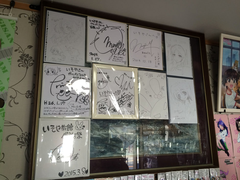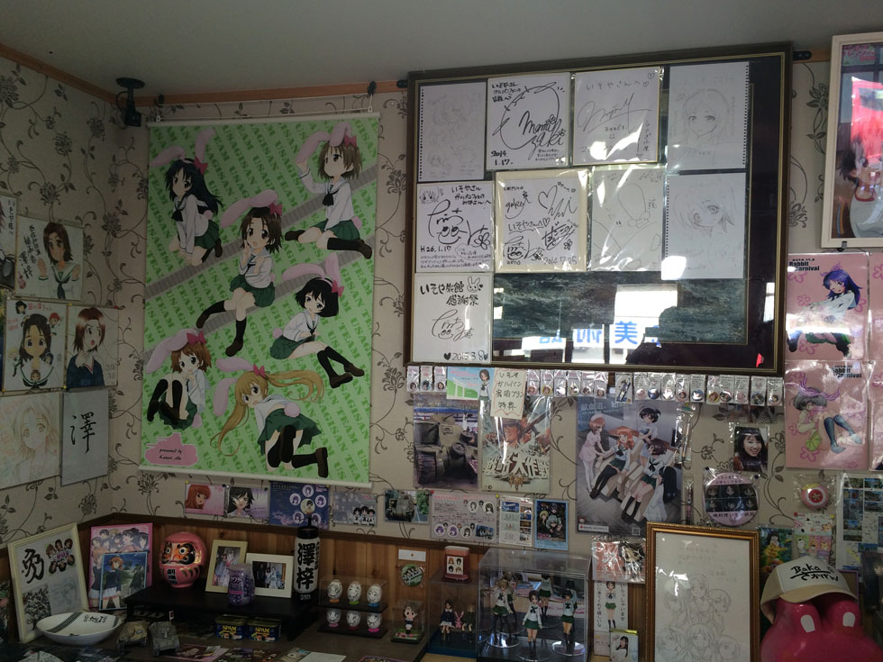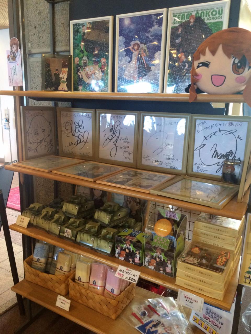 (촬영한 캐릭터는 오아라이 학원 토끼팀의 리더 사와 아즈사. 해당 캐릭터의 성우를 맞은 타케우치 히토미의 싸인이 있습니다. 2015년 7월 11일 방문)
