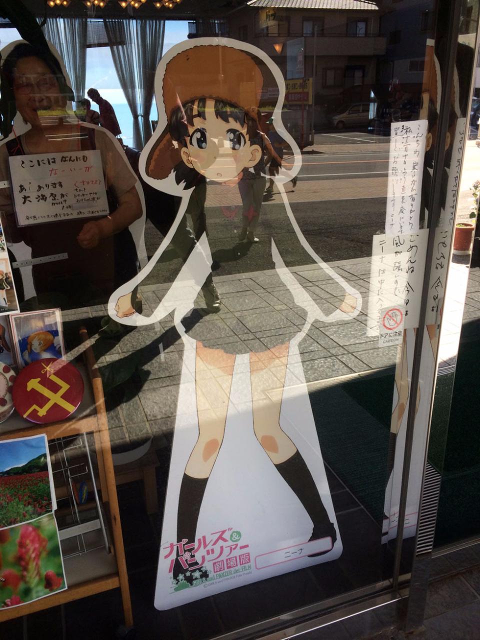 오아라이읍내의 가게들에는 이렇게 걸판에 등장하는 캐릭터의 등신대 판이 놓여져 있습니다.