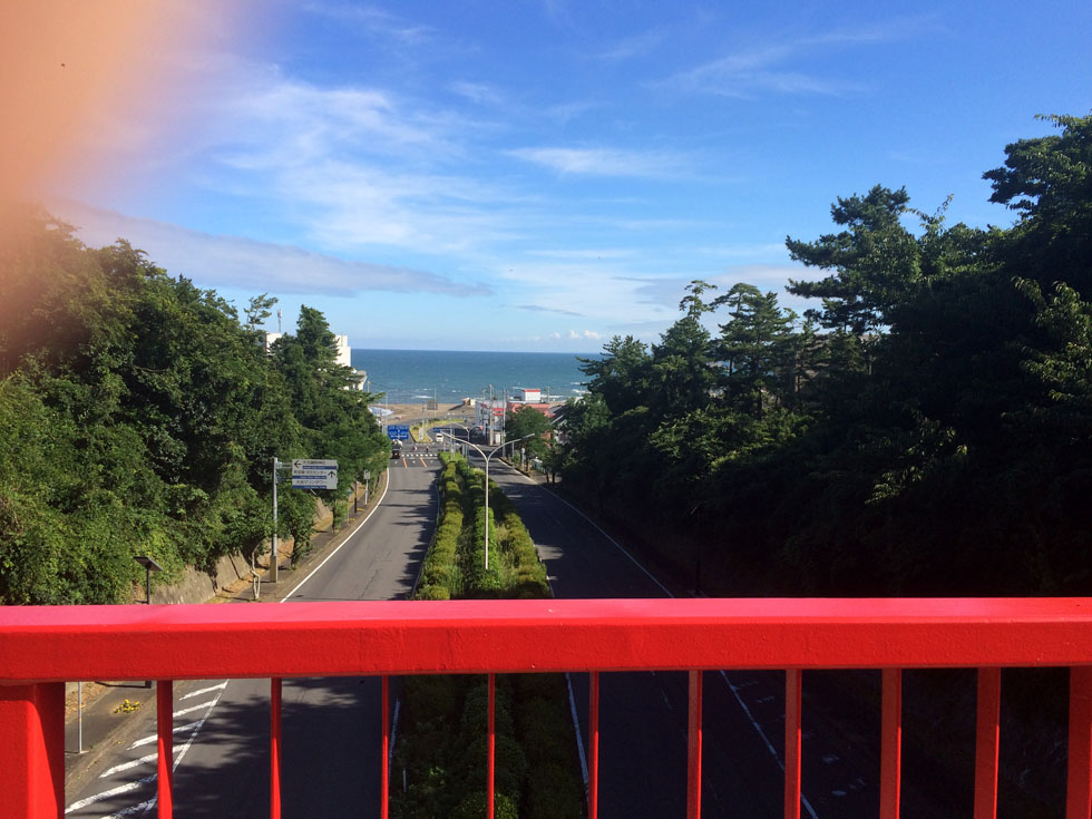건너편에 히타치나카항이 멀리 보입니다. 오아라이는 이바라키현의 유명한 해변관광지입니다.