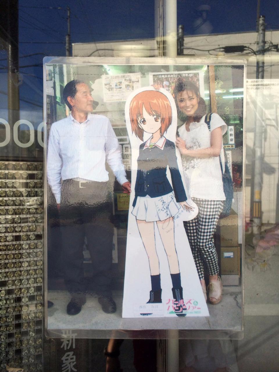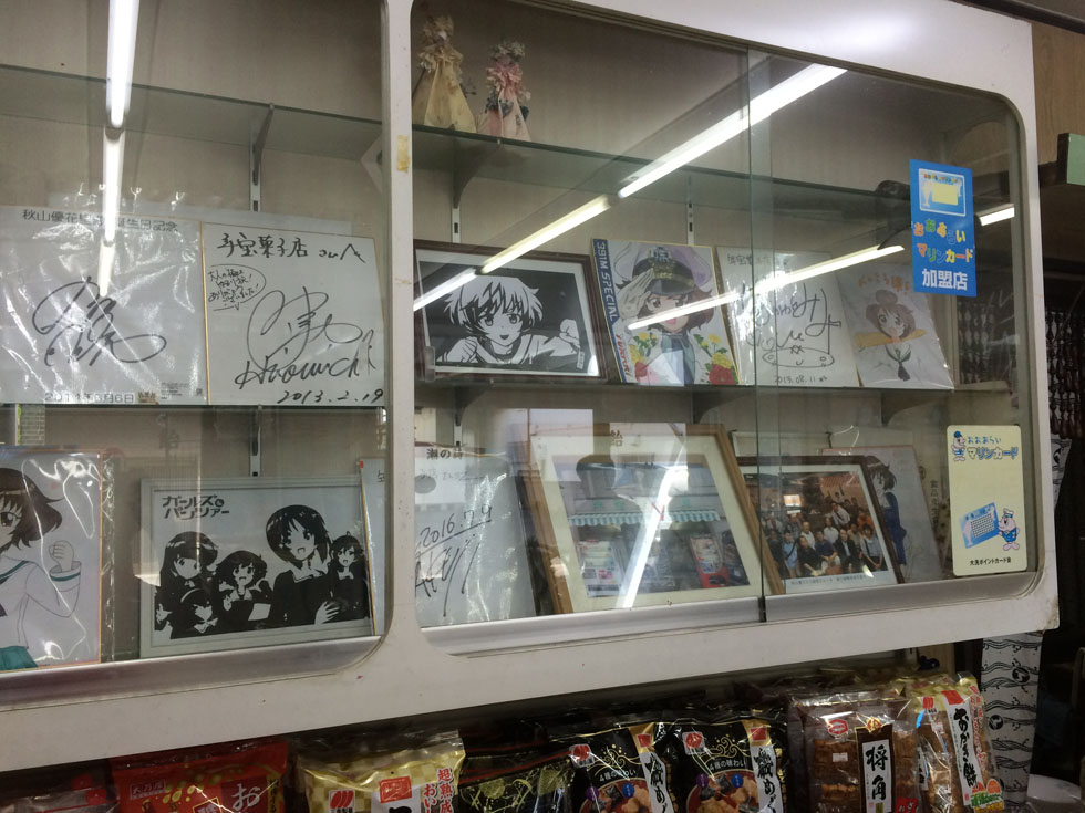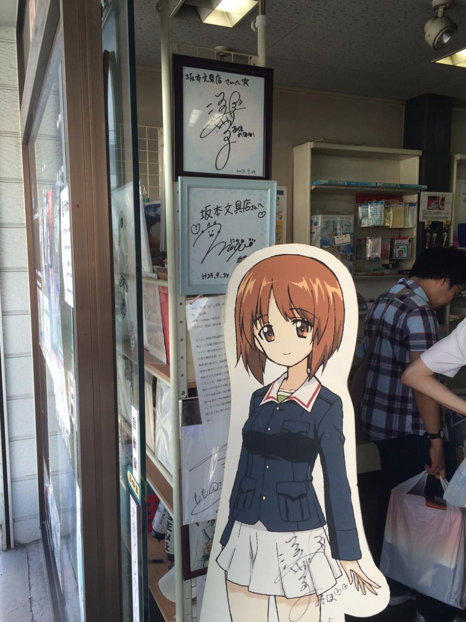 애니메이션이 자주 등장하던 마을 교차로 사거리에 있는 사카모토 문구점이 가장 손님이 많았는데 당연히 주인공 캐릭터인 니시즈미 미호의 캐릭터 간판이 서있었습니다.