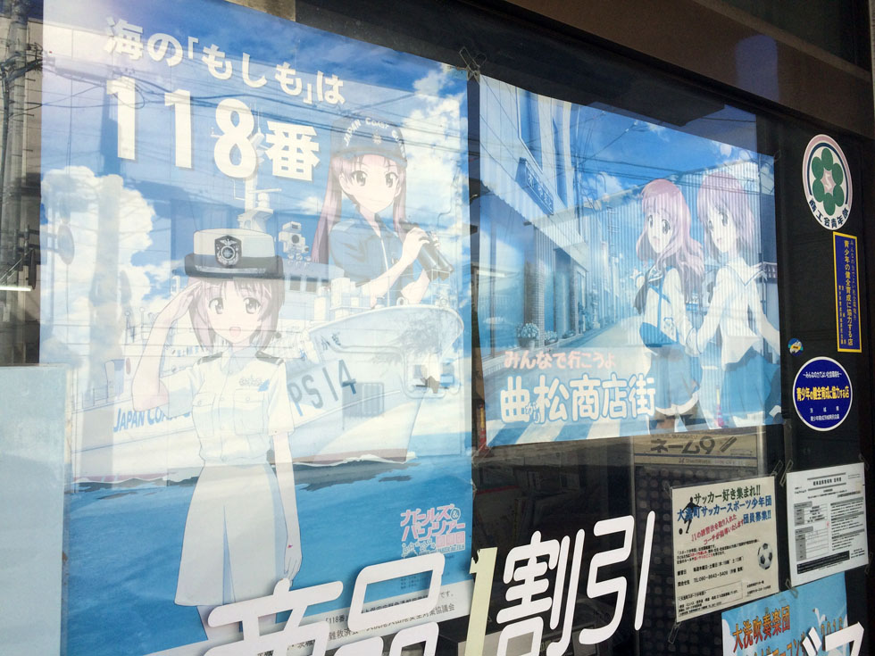 가게에 붙어있는 해상보안청 홍보 및 안내 캐릭터도... 걸판