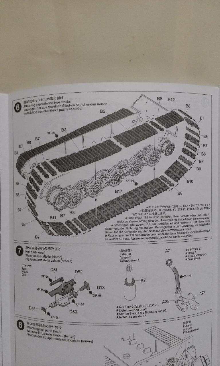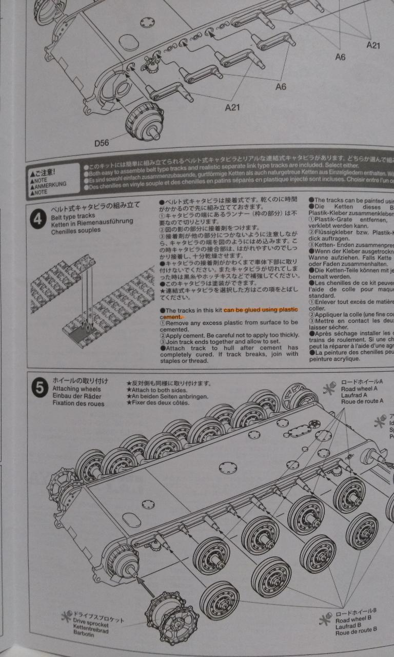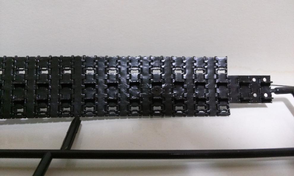 벨트식 궤도인데, 고정핀 부분의 길이로 볼때 불로 지지는 방식은 아닌듯 합니다. 설명서에 의하면 접착식입니다. 품질이 어떨지는 제작 후라야 알 수 있을 듯 하군요.