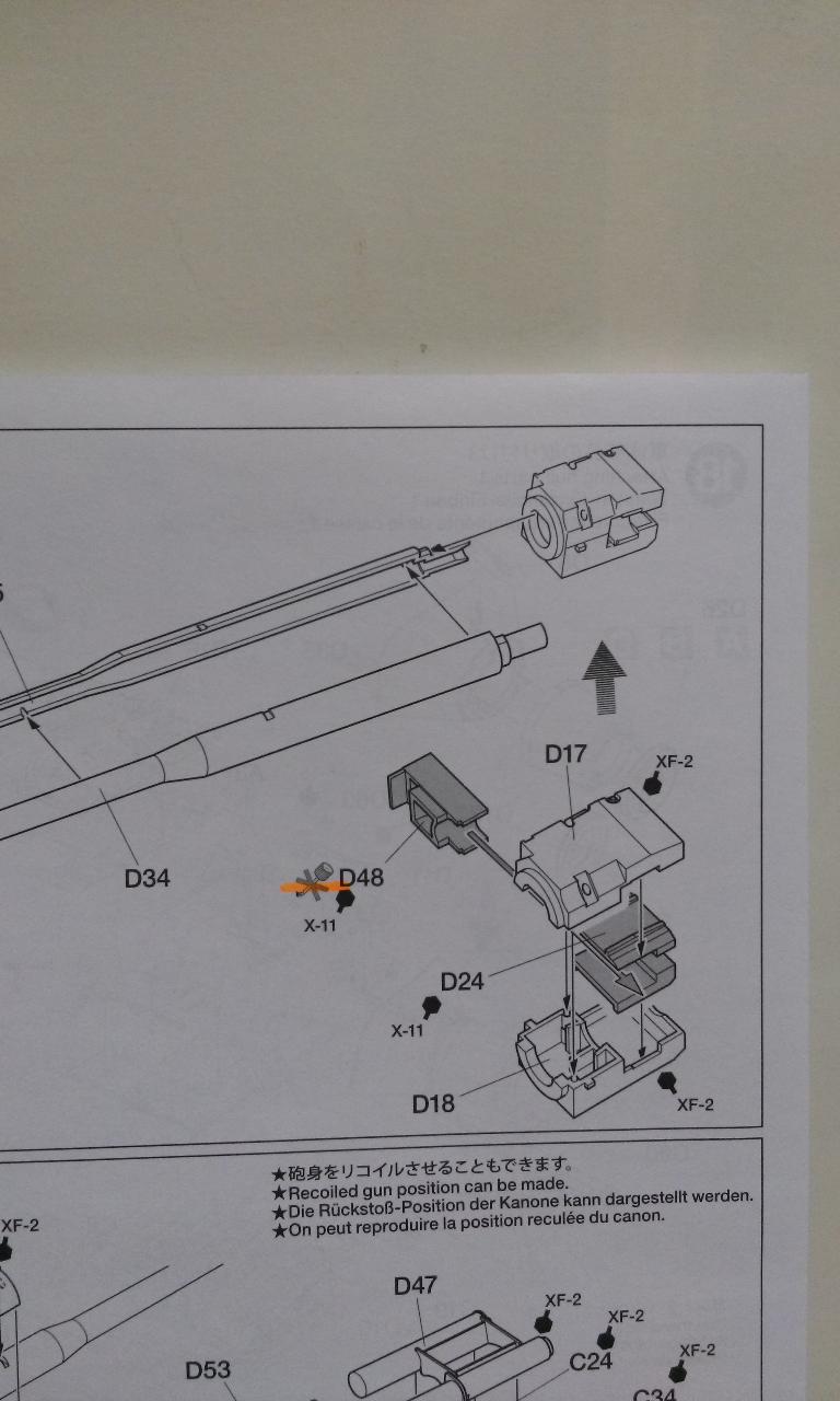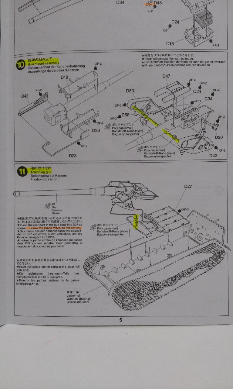 전통적인 포신부분과 달리 포를 쏜 반동으로 포신이 뒤로 후퇴한 모습을 연출할 수 있다고 하는군요. 그래서 아마도 D48부품이 비접착인듯 합니다. 타미야 야크터티거는 재미요소를 군데군데 배치해두었군요.