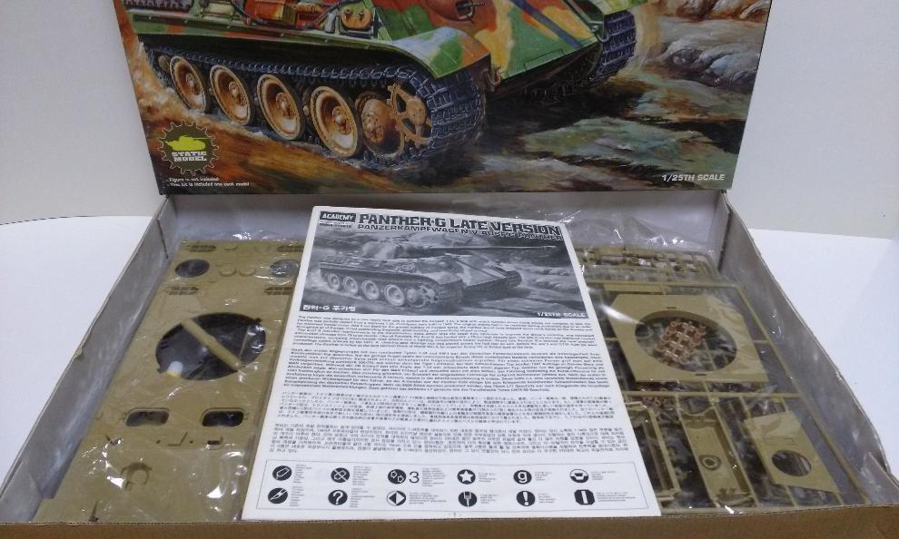 원래의 보금자리에 안착한 모습입니다. 완전한 형태를 갖추었군요. 결과적으로 토이스타 상자를 임시거처로 하였는데, 본래의 모습을 찾는데 그리 오랜 시간이 걸리지는 않았군요. 아카데미 1/25 판터G는 모터라이즈의 치명적인 문제가 지적되고 있으나, 모형용의 경우 박스아트부터 내용물까지 만족감이 높은 제품이 아닐까 합니다.